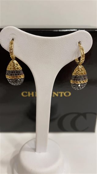 ORECCHINI CHIMENTO PENDENTI IN ORO GIALLO KT 18 CON DIAMANTI NERI KT 1.02