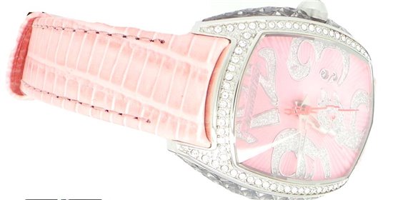 Orologio acciaio con datario, movimento al quarzo, cassa di misura 34 x 39 , spessore massimo di mm 15 vetro a prisma minerale, quadrante rosa con contorno di zirconi corona con swarovski, cinturino in pelle con chiusura a deploayante resistente all'acqua fino a 3 atm. tutto con certificato di due anni