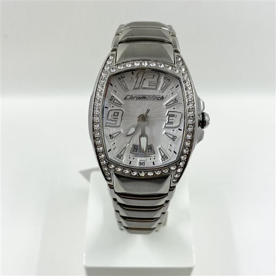 OROLOGIO CHRONOTECH DONNA CON CASSA E CINTURINO IN ACCIAIO, QUADRANTE BIANCO, ZIRCONI SULLA GHIERA. SOLO TEMPO, ANALOGICO, AL QUARZO.