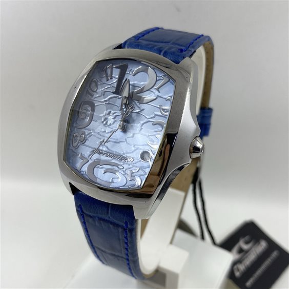 OROLOGIO CHRONOTECH DONNA CON CASSA IN ACCIAIO, CINTURINO AZZURRO IN VERA PELLE. ANALOGICO, SOLO TEMPO, AL QUARZO. QUADRANTE AZZURRO.