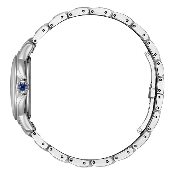 Orologio Donna solo tempo collezione Citizen Lady. Cassa in acciaio lucido, corona con pietra cabochon blu. Movimento Eco-Drive a carica luce con riserva di carica 180 giorni. Vetro zaffiro leggermente bombato. Quadrante rosa indici alternati a cifre romane lucide come lancette. Bracciale regolabile in acciaio lucido e satinato chiusura a farfalla con pulsanti. Impermeabile 5 bar(5 atm). Scatola e Garanzia 5 anni Originali.