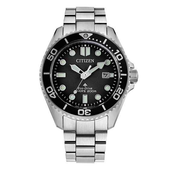 Orologio Solo Tempo Collezione Citizen Promaster Diver's Eco Drive 200 mt. (certificato ISO). Cassa e bracciale in acciaio spazzolato con particolari lucidi ghiera unidirezionale nera, fondo e corona serrati a vite. Movimento al quarzo Eco-Drive a carica luce infinita con riserva di carica di 180 . Quadrante nero indici e lancette ad alta luminosità. Vetro zaffiro con trattamento antiriflesso. Bracciale regolabile in acciaio satinato con chiusura di sicurezza ed estensione x la muta. Impermeabile 20 bar (20 atm.) Scatola ( bombola ) e garanzia 5 anni originali.