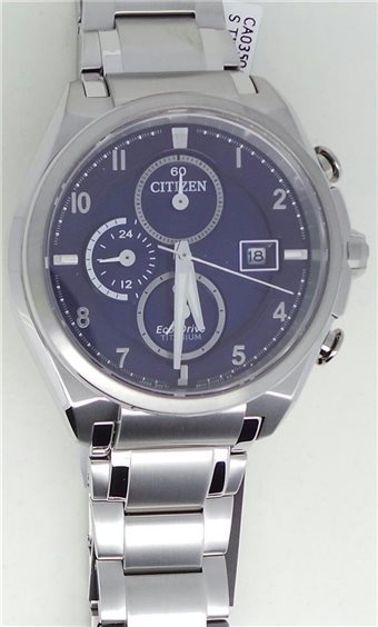 Bianco Movimento Eco Drive (a carica luce infinita), con riserva di carica di 7 mesi. Funzioni Cronografo a 1/5 di secondo. Caratteristiche Cassa e bracciale in SuperTitanio Ti+IP. Vetro zaffiro. Fondo serrato a vite. WR 10 bar. Dimensioni Diametro cassa 44 mm