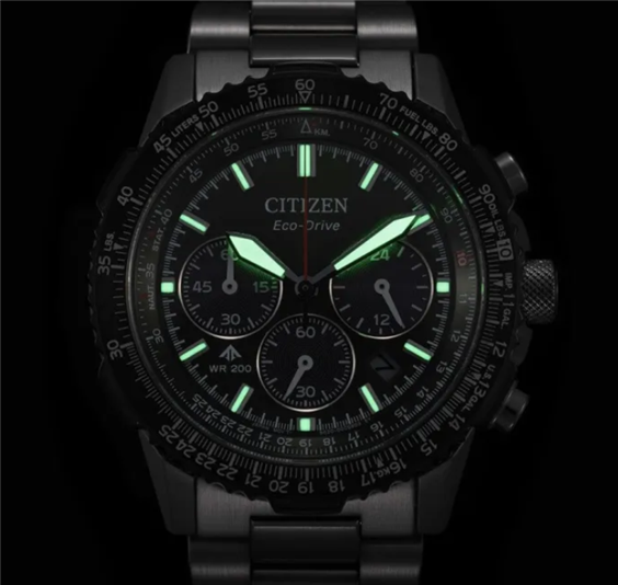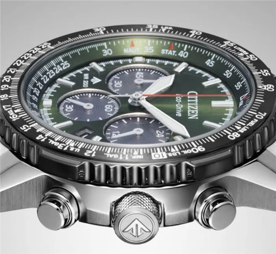 Orologio Cronografo Uomo Collezione Promaster Navihawk . Cassa in acciaio spazzolato con particolari lucidi , ghiera girevole con regolo calcolatore aeronautico , fondo a vite Movimento Eco-Drive cal. B620 cronografo con riserva di carica fino a 9 mesi. Resistenza magnetica di tipo 1 . Quadrante verde indici e lancette luminescenti. Vetro zaffiro antiriflesso . Bracciale regolabile in acciaio , chiusura deployante con pulsanti . Impermeabile 20 bar (WR 20 Atm.) Scatola e Libretto Istruzioni Originali. Garanzia 5 anni