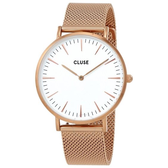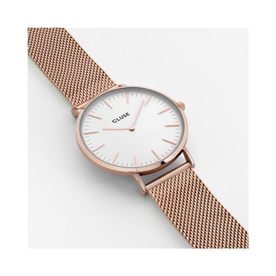 Orologio Solo Tempo Da Donna Di Cluse Della Collezione La Bohème. Modello Realizzato In Acciaio E Pvd Oro Rosa. Questo Orologio Ha Cassa Di 38Mm, Con Finitura Pvd Oro Rosa, Quadrante Di Colore Bianco E Vetro Minerale. La Cassa Ha Uno Spessore Di 7 Mm. Questo Modello Ha Bracciale In Metallo Di Colore Oro Rosa, Con Fibbia Gioielleria. La Resistenza All'Acqua È Di 3 Atm. Questo Orologio Dispone Di Un Quadrante Oversized Con Dettagli Minimali E Una Rifinitura Molto Sottile. La Referenza È CL18112 Questo solo tempo verrà spedito con Scatola Originale Cluse + GARANZIA.