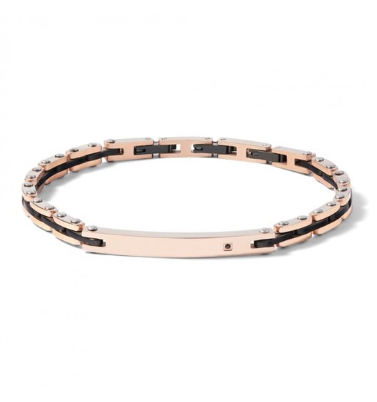 Bracciale in Acciaio lucido, trattamento PVD nero e rosè, zircone nero