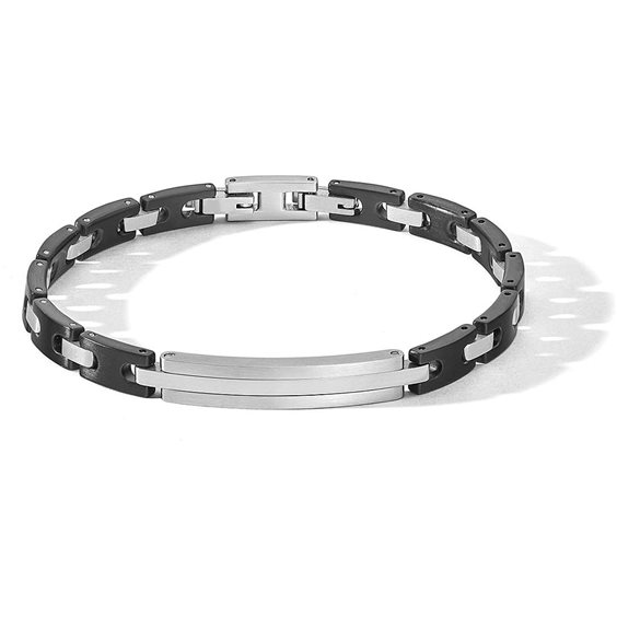 Bracciale da uomo di Comete della collezione Bsc. Bracciale in acciaio e trattamento in pvd nero. Lunghezza standard a 21 cm, riducibile grazie alla doppia chiusura a 19,5 cm.