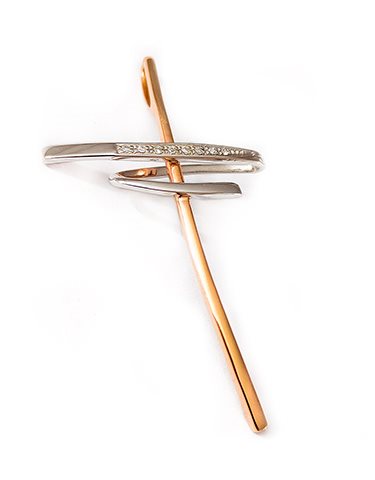 Ciondolo in oro rosa e bianco 18 carati ideato e realizzato da Comete Gioielli. Il ciondolo Comete è impreziosito da diamanti di carati totali 0,04, colore G purezza SI, taglio brillante rotondo, misure 5 x 3 centimetri compreso l'occhiello.
