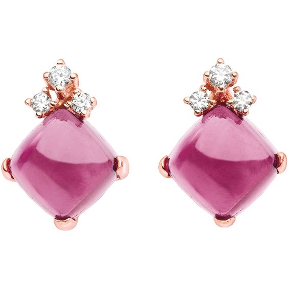 Orecchini a lobo in oro rosa 18kt Diamanti P.Ct 0,11 col. G purezza SI con centrale in tormalina rosa cabochon antico ct 4,00