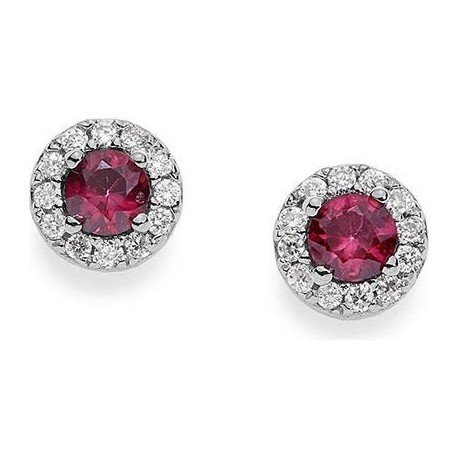 Orecchini, Oro 750 . Diamanti , Punti Di Carato: 12 , Colore Pietra: G , Purezza Pietra: Si . Rubino Punti Di Carato 0,22.,