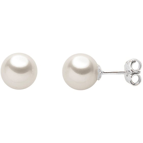 Orecchini in oro bianco 750 mill. con perla coltivata FW diam. 10/10,5 mm.