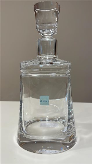 BOTTIGLIA WHISKY, FIRMATA CRISTAL SEVRES DELLA COLLEZIONE DANIEL IN CRISTALLO TRASPARENTE. BOTTIGLIA DALLA FORMA QUADRANGOLARE, LINEA MODERNA. GIÀ NEL 1762 LA VETRERIA DI SEVRES FU CONSIDERATA UNA DELLE TRE MIGLIORI FORNACI DI FRANCIA. E’ IL MARCHESE DI MARIGNY CHE INTRODUCE IL CRISTALLO NELLA PRODUZIONE DI SEVRES E CONVERTE L’ EUROPA ALLA TRASPARENZA INEGUAGLIABILE DI UN MATERIALE CHE DIVENTA ORMAI NECESSARIO A TUTTE LE GRANDI TAVOLE. IN UN SECOLO E MEZZO CRISTAL DE SEVRES CONQUISTA GLI APPASSIONATI DELL’ ARTE E DELLA TAVOLA PARTICOLARMENTE INTRANSIGENTI SULLA QUALITÀ E NELL’ ESTETICA. OGGI CRISTAL SEVRES CONIUGA LA PERFEZIONE ARTIGIANALE DEL ‘FATTO A MANO E LA SENSIBILITÀ CREATIVA AL PUNTO CHE MOLTI DEI MAESTRI VETRAI CHE LAVORANO IN SEVRES HANNO RICEVUTO IL PRESTIGIOSO TITOLO DI ‘MEILLEUR OUVRIER DE FRANCE’.