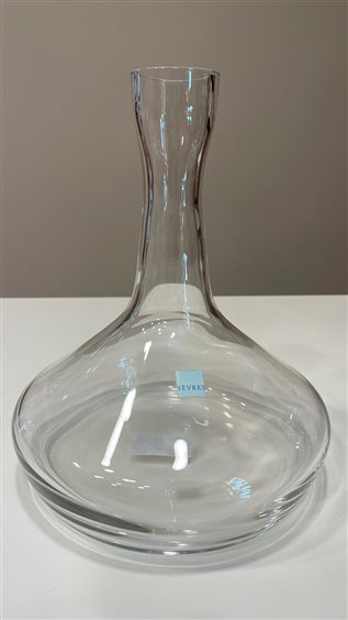 DECANTER CRISTAL SEVRES IN CRISTALLO TRASPARENTE DELLA COLLEZIONE ARPEGES. GIÀ NEL 1762 LA VETRERIA DI SEVRES FU CONSIDERATA UNA DELLE TRE MIGLIORI FORNACI DI FRANCIA. E’ IL MARCHESE DI MARIGNY CHE INTRODUCE IL CRISTALLO NELLA PRODUZIONE DI SEVRES E CONVERTE L’ EUROPA ALLA TRASPARENZA INEGUAGLIABILE DI UN MATERIALE CHE DIVENTA ORMAI NECESSARIO A TUTTE LE GRANDI TAVOLE. IN UN SECOLO E MEZZO CRISTAL DE SEVRES CONQUISTA GLI APPASSIONATI DELL’ ARTE E DELLA TAVOLA PARTICOLARMENTE INTRANSIGENTI SULLA QUALITÀ E NELL’ ESTETICA. OGGI CRISTAL SEVRES CONIUGA LA PERFEZIONE ARTIGIANALE DEL ‘FATTO A MANO E LA SENSIBILITÀ CREATIVA AL PUNTO CHE MOLTI DEI MAESTRI VETRAI CHE LAVORANO IN SEVRES HANNO RICEVUTO IL PRESTIGIOSO TITOLO DI ‘MEILLEUR OUVRIER DE FRANCE’.