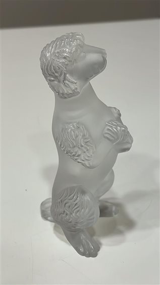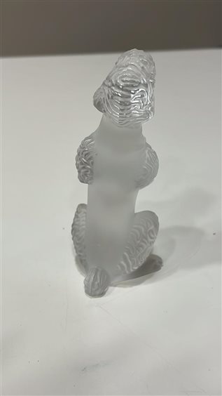 SCULTURA CRISTAL DE SEVRES CANE BARBONCINO IN CRISTALLO SATINATO. GIÀ NEL 1762 LA VETRERIA DI SEVRES FU CONSIDERATA UNA DELLE TRE MIGLIORI FORNACI DI FRANCIA. E’ IL MARCHESE DI MARIGNY CHE INTRODUCE IL CRISTALLO NELLA PRODUZIONE DI SEVRES E CONVERTE L’ EUROPA ALLA TRASPARENZA INEGUAGLIABILE DI UN MATERIALE CHE DIVENTA ORMAI NECESSARIO A TUTTE LE GRANDI TAVOLE. IN UN SECOLO E MEZZO CRISTAL DE SEVRES CONQUISTA GLI APPASSIONATI DELL’ ARTE E DELLA TAVOLA PARTICOLARMENTE INTRANSIGENTI SULLA QUALITÀ E NELL’ ESTETICA. OGGI CRISTAL SEVRES CONIUGA LA PERFEZIONE ARTIGIANALE DEL ‘FATTO A MANO E LA SENSIBILITÀ CREATIVA AL PUNTO CHE MOLTI DEI MAESTRI VETRAI CHE LAVORANO IN SEVRES HANNO RICEVUTO IL PRESTIGIOSO TITOLO DI ‘MEILLEUR OUVRIER DE FRANCE’.