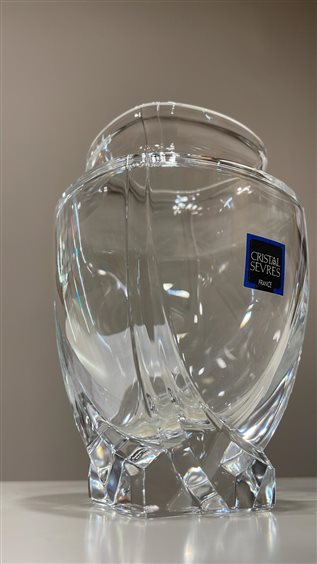 VASO SULLY DI CRISTAL SEVRES IN CRISTALLO TRASPARENTE DALLA BASE QUADRANGOLARE E DALLE LINEE MORBIDE E CONTEMPOAREE. GIÀ NEL 1762 LA VETRERIA DI SEVRES FU CONSIDERATA UNA DELLE TRE MIGLIORI FORNACI DI FRANCIA. E’ IL MARCHESE DI MARIGNY CHE INTRODUCE IL CRISTALLO NELLA PRODUZIONE DI SEVRES E CONVERTE L’ EUROPA ALLA TRASPARENZA INEGUAGLIABILE DI UN MATERIALE CHE DIVENTA ORMAI NECESSARIO A TUTTE LE GRANDI TAVOLE. IN UN SECOLO E MEZZO CRISTAL DE SEVRES CONQUISTA GLI APPASSIONATI DELL’ ARTE E DELLA TAVOLA PARTICOLARMENTE INTRANSIGENTI SULLA QUALITÀ E NELL’ ESTETICA. OGGI CRISTAL SEVRES CONIUGA LA PERFEZIONE ARTIGIANALE DEL ‘FATTO A MANO E LA SENSIBILITÀ CREATIVA AL PUNTO CHE MOLTI DEI MAESTRI VETRAI CHE LAVORANO IN SEVRES HANNO RICEVUTO IL PRESTIGIOSO TITOLO DI ‘MEILLEUR OUVRIER DE FRANCE’.