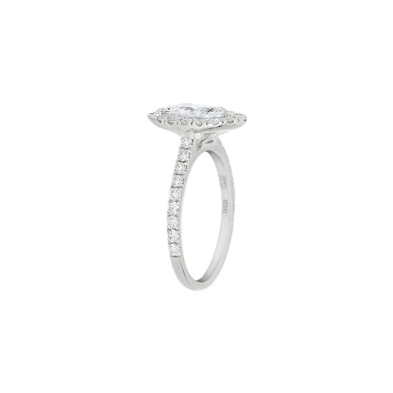 Anello solitario Crivelli in oro bianco 18kt con Diamante naturale taglio Marquise ct. 1,00 D/SI1 e diamanti naturali taglio brillante ct.0,57 F/VS. Diamante centrale certificato GIA