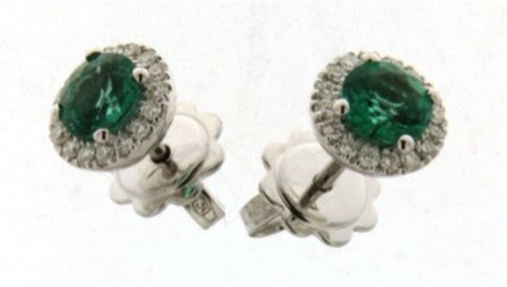 BOCCOLE CONTORNINO X CENTRO 32 DIAMANTI CT 0.22 E DUE SMERALDI CT 0.94