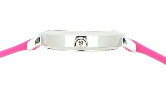 Orologio serie Hoop La in acciaio 316L, movimento al quarzo, vetro minerale, quadrante blu con logo della maison, cinturino in silicone fucsia, cassa mm 34