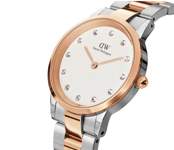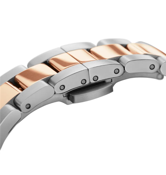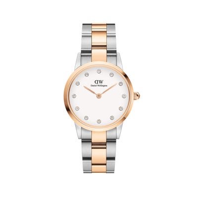 Orologio solo tempo da donna della collezione ICONIC LINK LUMINE, con cassa in acciaio rosato del diametro di 28 Mm. Quadrante bianco con indici in cristalli Swarovski, cinturino in bicolore acciaio e acciaio rosato. resistente all'acqua 3 atmosfere, movimento al quarzo.