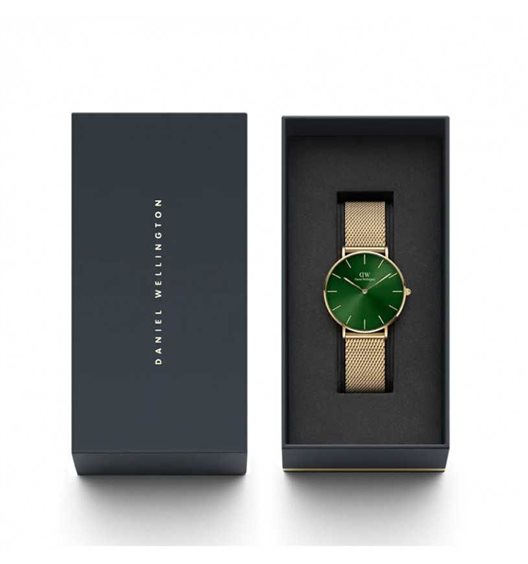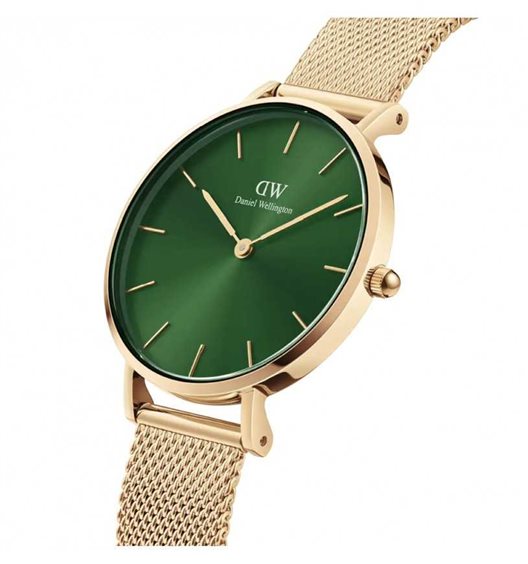 Petite Emerald sfoggia un quadrante verde scuro con finitura a raggi di sole. Un colore che simboleggia equilibrio, armonia e buona fortuna. Realizzato in acciaio inossidabile lucido, disponibile con una raffinata placcatura in oro. Un orologio audace per donare un tocco unico al tuo look.
