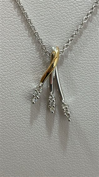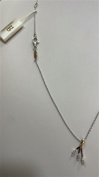 COLLANA DAVITE E DELUCCHI IN ORO BIANCO KT 18 CON PENDENTE BICOLORE IN ORO BIANCO E GIALLO KT 18 IMPREZIOSITO DA DIAMANTI TAGLIO BRILLANTI KT 0.11.