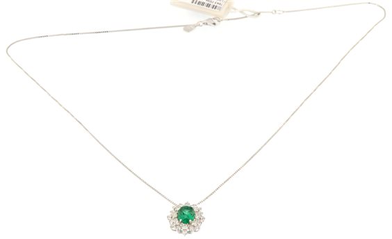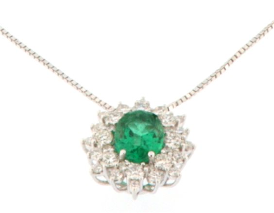 COLLANA IN ORO 18KT.CON SMERALDO TAGLIO OVALE E DIAMANTI TAGLIO BRILLANTE