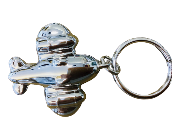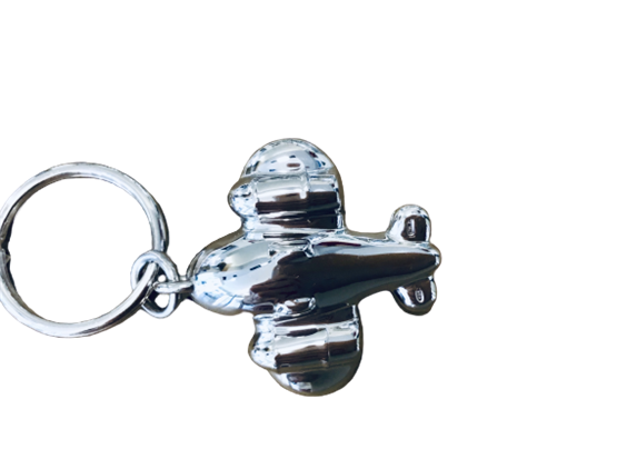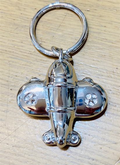 Portachiavi marca "Del Conte" in argento 925 a forma di aeroplano con gancio a brisè mobile. Il portachiavi è rodiato cioè trattato in modo che non ossidi attraverso un procedimento galvanico di protezione.