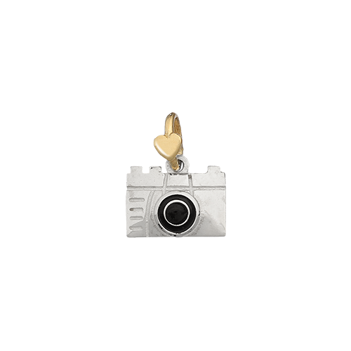 Questo charm macchina fotografica è il regalo ideale per la propria fidanzata o fidanzato, esso è realizzato in argento e oro giallo 9 carati, lunghezza ciondolo 1,5 centimetri compreso l'occhiello.