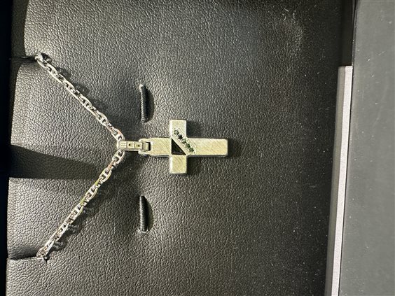 Collana in argento e croce con spinelli neri e smalto.