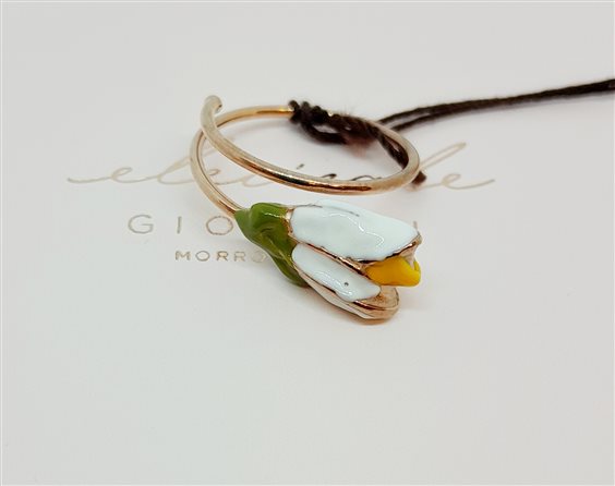 ELECICALE GIOIELLI Anello Bucaneve, collezione Emily Dickinson. Argento 925 in bagno oro rosa 24 kt e smalti. Lavorazione artigianale, design originale made in Marche. Anello aperto, misura regolabile.Gioiello anallergico, nichel free.