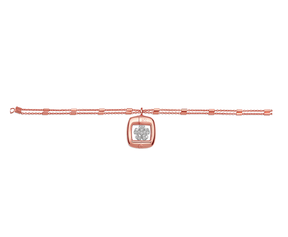 Bracciale in argento rodiato oro rosa con doppio filo e ciondolo su cui è possibile inserire un simbolo o l'iniziale desiderata.