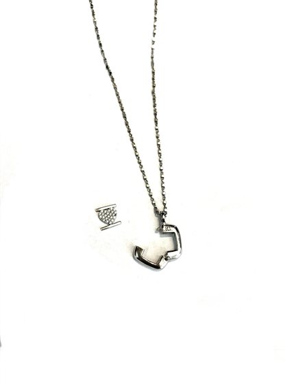 Collana mini rosario in argento rodiato su cui viene inserita l'iniziale o il simbolo che si desidera. L'inserto è in omaggio. Chiedere nel messaggio quando lo si acquista la lettere che si desidera.