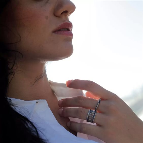 L’anello da donna, in argento 925, è la fedele riproduzione di un tempio romano. Solitamente eretto su un alto podio, accessibile tramite una scalinata frontale e circondato da un vasto colonnato, il tempio è considerato una delle costruzioni più importanti della storia Misura personalizzata su richiesta, tempi di produzione fino a 15 - 20 giorni lavorativi..