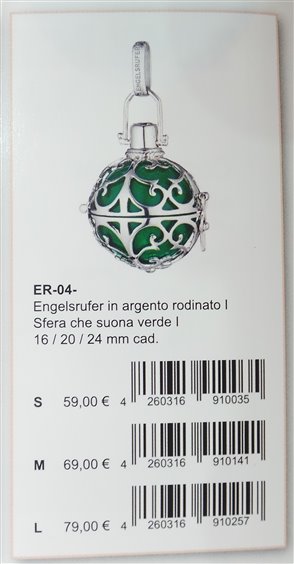 Chiama Angeli in argento rodiato, sfera che suona verde 16mm Il colore verde simboleggia speranza, salute, equilibrio e sincerità