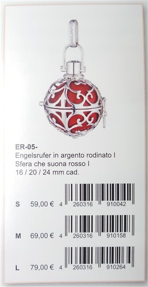 Chiama Angeli in argento rodinato, sfera che suona rosso 24mm
