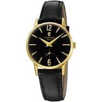 OROLOGIO FESTINA VINTAGE COLLEZIONE 'EXTRA' PRODUZIONE LIMITATA, MODELLO DEPOSITATO , CASSA IN ACCIAIO PLACCATO ORO GIALLO ,CINTURINO IN PELLE NERO, MOVIMENTO AL QUARZO, QUADRANTE NERO CON INDICI IN RILIEVO DORATI,WR 3 ATM