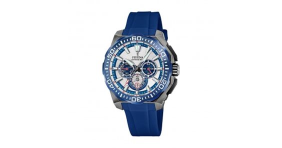 Orologio cronografo di Festina da uomo della collezione Chrono Bike. Orologio realizzato in acciaio inossidabile 316l con cassa di forma rotonda di misura 45.5 mm e spessore 14,4 mm con vetro minerale. Quadrante di colore grigio con indici di colore bianco. Cinturino realizzato in caucciù di colore blu con fibbia antracite. Funzioni: cronografo. Movimento al quarzo. La resistenza all'acqua è 20 ATM. La referenza è F20725/4 Questo articolo verrà spedito con Scatola Originale Festina