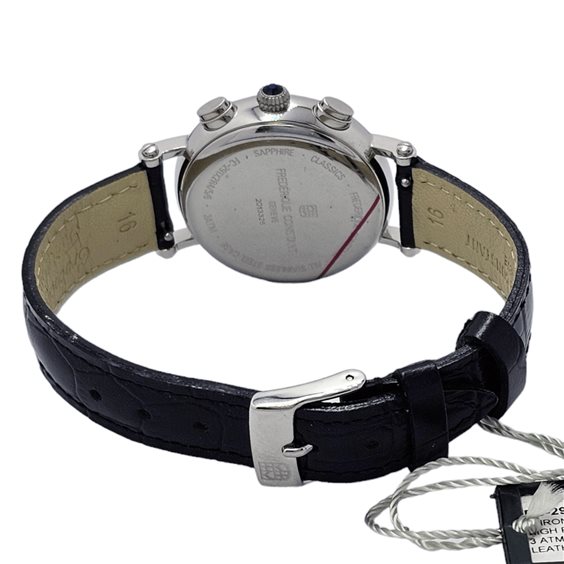 Il Frederique Constant Classics Ref. FC-291A2R6 è un elegante segnatempo femminile che esprime tutta la raffinatezza della tradizione orologiera svizzera, con uno stile classico e senza tempo tipico della collezione Classics. La cassa in acciaio con finitura PVD oro rosa da 34 mm, con spessore di circa 7,5 mm, presenta proporzioni armoniose ideali per il polso femminile. Il peso contenuto di circa 50 grammi rende l’orologio estremamente confortevole e adatto all’uso quotidiano. Il quadrante argento con numeri romani è caratterizzato da un design pulito ed elegante, arricchito da sottili lancette che garantiscono ottima leggibilità e un’estetica raffinata. Il segnatempo è animato dal movimento al quarzo Frederique Constant Calibro FC-291, noto per la sua precisione e affidabilità, perfetto per chi desidera un orologio pratico e sempre pronto all’uso. Il quadrante è protetto da vetro zaffiro antigraffio, mentre il fondello a pressione assicura solidità e protezione al movimento. Il tutto è completato da un cinturino in pelle marrone con fibbia ad ardiglione, che valorizza ulteriormente l’eleganza del modello.
