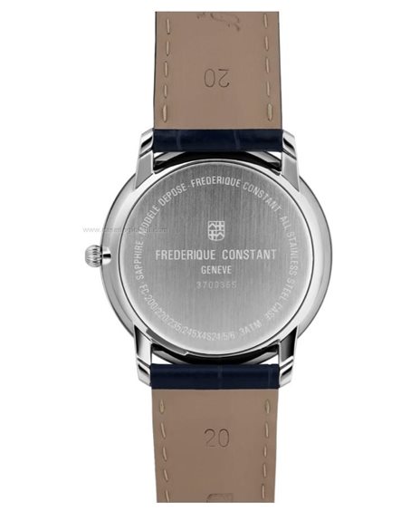 Fc-245 Movimento Al Quarzo. 10 Gioielli, Batteria Con 25 Mesi Di Autonomia. Case: Cassa In 3 Parti In Acciaio Inossidabile Lucidato. Diametro Di 37mm. Vetro Zaffiro. Resistente All'acqua Fino A 3 Atm. Dial: Quadrante Argentato Con Indici Argentati E Grigio Scuri Applicati E Stampati. Lancette In Argentate Lucidate A Mano E Lancette Dei Secondi Grigie Scure. Strap: Cinturino Di Pelle Nero.