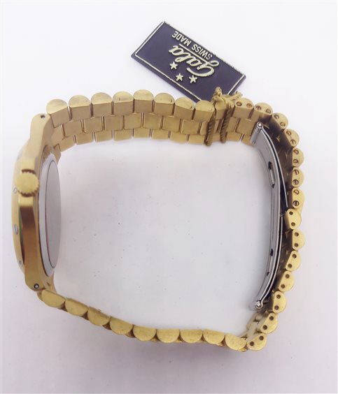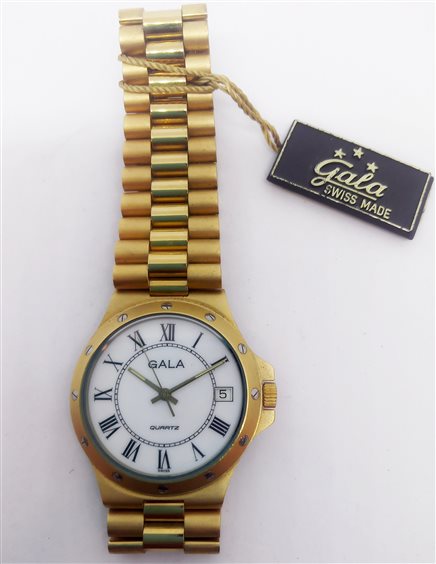 Orologio vintage Gala Swiss made, laminto oro giallo, al quarzo con datario. Presenta i naturali segni del tempo dovuti alla giacenza.