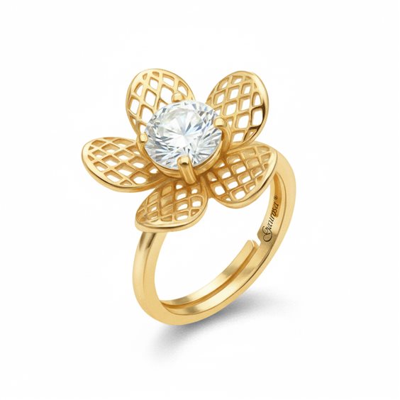 Anello appartenente alla collezione Biancospino! L'anello è interamente fatto a amano e ciò lo si può riscontare anche da varie finiture al grezzo, che vogliono evidenziare l'unicità di questo prodotto. Il gioiello è regolabile e si compone di un fiore di biancospino: la parte centrale è composta da un cristallo di Zirconia Cubica, mentre i petali sono dati da una rete d'argento. L'intero prodotto è stato sottoposto ad una doratura. La decorazione ha un diametro complessivo di 2.20 cm. Il prodotto è disponibile dalla misura 8 alla misura 25; nell’eventualità si desiderasse realizzare una misura non disponibile, contattaci, cercheremo di venire incontro alle tue esigenze. E' inoltre personalizzabile, su richiesta il colore della pietra centrale..