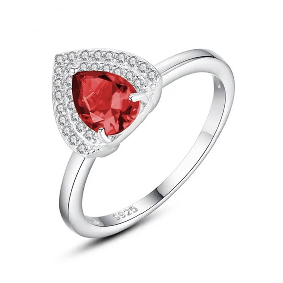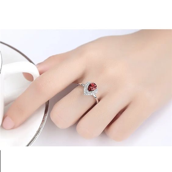 Anello in argento 925 rodiato. Il gioiello presenta una decorazione centrale che ricorda la forma di una goccia con incastonate Zirconia Cubica di taglio brillante e uno zircone rosso di taglio goccia. Il gambo, invece, è liscio e risulta comodo alla calzata. Il prodotto è regolabile dalla misura 6 alla 25 selezionando la misura dall'apposito box.