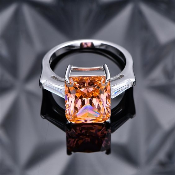 Anello in argento 925 rodiato con zirconia cubica. Il prodotto presenta pietre di zirconia cubica di taglio baguette e uno zircone colorato centrale di taglio emerald. Il gambo è liscio e risulta comodo alla calzata. Il prodotto è regolabile dalla misura 8 alla 25 selezionando la misura dall'apposito box.