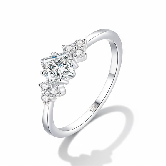 Anello in argento 925 con cristalli di zirconia cubica. Il prodotto presenta una pietra di zirconia cubica di forma quadrangolare con pietre di taglio brillante incastonate lateralmente. Il gambo è liscio e risulta comodo alla calzata. Il prodotto è regolabile selezionando la misura dall'apposito box.