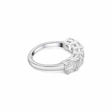 Riviera in argento 925 rodiato. Gli anelli Riviera sono tra i modelli più amati. Sono costituiti da un cerchio semplice, sulla cui parte frontale vengono montate in genere dalle 5 alle 9 pietre in fila, una conseguente all'altra. Solitamente il classico anello riviera viene regalato in occasione di importanti anniversari in ambito amoroso. Selezionare la misura dall’apposito box.