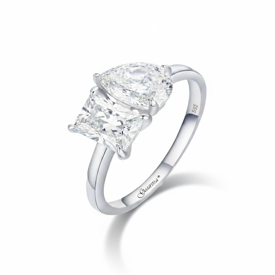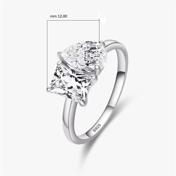 Anello in argento 925 con cristalli di zirconia cubica. Il prodotto presenta due pietre, rispettivamente, di taglio emerald e goccia incastonate con griffe. Il gambo è liscio e risulta comodo alla calzata. Il prodotto è regolabile selezionando la misura dall'apposito box.,.