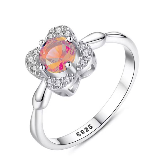 Anello in argento 925 rodiato. Il gioiello presenta una decorazione centrale a forma di fiore in cui i petali sono formati con pietre di zirconia cubica e la parte centrale è data da una pietra rosa. La pietra colorata è incastonata con montatura quattro griffe color argento rosato. Il gambo è liscio e risulta comodo alla calzata. Il prodotto è regolabile dalla misura 6 alla 25 selezionando la misura dall’apposito box.