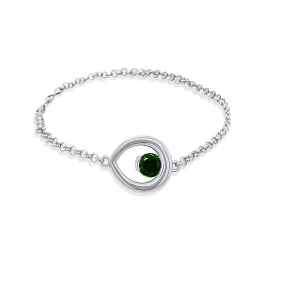 Bracciale in argento e Zircone Verde. Gioiello appartenente alla collezione Goccia, realizzata a mano nel nostro laboratorio.Il gioiello è composto dalla silhouette di una goccia in argento rodiato liscio al cui centro è posto un punto luce colorato. La decorazione, nel suo complesso, ha altezza di 2.00 cm, larghezza 1.50 cm ; il bracciale è lungo 19.50cm. Unico nel suo genere! Nell'eventualità la lunghezza del bracciale non fosse di vostro gradimento, contattaci e verremo incontro alle vostre esigenze.