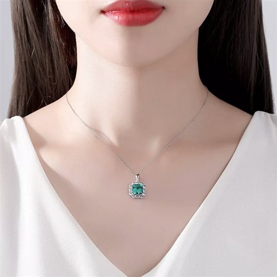 Girocollo in argento 925 rodiato. Il gioiello si compone da una collana in argento 925 il pendente ha incastonate Zirconia Cubica, di taglio brillante, e Zircone verde a forma quadrata. La catena è lunga 42cm con un allungamento nella parte finale con catenella ad anellini sino ad arrivare a 45cm, si può regolare la lunghezza agganciandola all’anellino desiderato. Questo gioiello è bellissimo da indossare abbinato ad altre collane della linea Fantasy, assieme sono di grande effetto scenico.