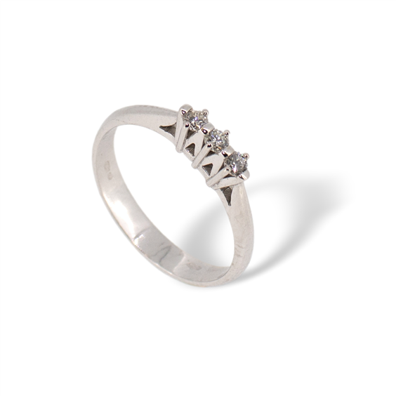 Anello trilogy da donna in oro bianco 18 kt con diamanti naturali taglio brillante, per una caratura totale di 0.15 ct, purezza VS e colore G. Tre pietre preziose incastonate in una montatura classica e raffinata, simbolo perfetto di passato, presente e futuro. Firmato Idee Preziose dal 1987. Materiale: Oro bianco 18 kt Pietre: Diamanti naturali Caratura totale: 0.15 ct Purezza: VS Colore: G Taglio: Brillante rotondo Peso: 3,20 gr Genere: Donna Brand: Idee Preziose dal 1987 Stile: Trilogy classico Occasioni: Promessa, anniversario, regalo significativo Tre diamanti. Tre momenti. Un’unica storia.